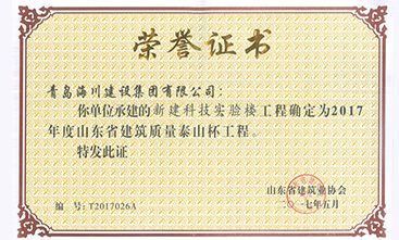 海川集團(tuán)農(nóng)業(yè)大學(xué)科技樓項(xiàng)目榮獲山東省泰山杯2017-05-31海川集團(tuán)七分公司承建的農(nóng)業(yè)大學(xué)科技樓項(xiàng)目近日榮獲山東省建筑工程質(zhì)量最高獎(jiǎng)—“泰山杯”。今年4月,山東省“泰山杯”驗(yàn)收專(zhuān)家組一行4人在市建筑業(yè)協(xié)會(huì)負(fù)責(zé)人的陪同下,對(duì)我單位申報(bào)“泰山杯”的青島農(nóng)業(yè)大學(xué)科技實(shí)驗(yàn)樓進(jìn)行了驗(yàn)收。青島農(nóng)業(yè)大學(xué)科技實(shí)驗(yàn)樓工程用于科技實(shí)驗(yàn)室和公共平臺(tái)實(shí)... -