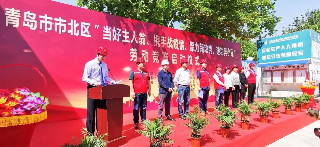 青島市市北區(qū)舉行“當(dāng)好主人翁、攜手戰(zhàn)疫情、聚力新攻勢(shì)、建功奔小康”勞動(dòng)競(jìng)賽活動(dòng)2020-05-285月28日上午,由青島海川建設(shè)集團(tuán)承辦的青島市市北區(qū)“當(dāng)好主人翁、攜手戰(zhàn)疫情、聚力新攻勢(shì)、建功奔小康”勞動(dòng)競(jìng)賽活動(dòng)啟動(dòng)儀式在科技創(chuàng)新園B區(qū)項(xiàng)目舉行。青島市市北區(qū)總工會(huì)常務(wù)副主席杜杰、青島市市北區(qū)總工會(huì)副主席王巖、青島海川建設(shè)集團(tuán)有限公司常務(wù)副總裁潘維強(qiáng)、青島城發(fā)信德產(chǎn)業(yè)... -