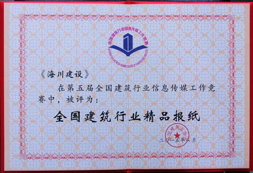 8月26日,中國建筑業(yè)協(xié)會在大連召開的全國建筑行業(yè)信息傳媒工作經(jīng)驗交流會上,向第五屆全國建筑行業(yè)信息傳媒工作競賽的優(yōu)勝者頒發(fā)了獎杯和榮譽(yù)證書。海川集團(tuán)被評為“全國建筑行業(yè)信息宣傳先進(jìn)集體”,公司網(wǎng)站被評為“全國建筑行業(yè)精品網(wǎng)站”,《海川建設(shè)》企業(yè)報被評為“全國建筑行業(yè)精品報紙”,王修岐同志被評為“全國建筑行業(yè)信息宣傳優(yōu)秀工作者”。