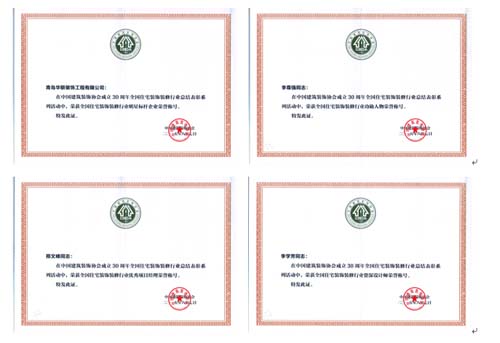 2015年8月7日,中國建筑裝飾協(xié)會以中裝協(xié)[2015]60號文件下發(fā)了關(guān)于《慶祝中國建筑裝飾協(xié)會成立30周年全國住宅裝飾裝修行業(yè)總結(jié)表彰系列活動的表彰決定》,華聯(lián)公司榮獲四項國家級榮譽稱號——青島華聯(lián)裝飾工程有限公司獲“全國住宅裝飾裝修行業(yè)明星標(biāo)桿企業(yè)”榮譽稱號,公司總經(jīng)理李尊強(qiáng)獲“全國住宅裝飾裝修行業(yè)功勛人物”,項目經(jīng)理邢文峰獲“全國住宅裝飾裝修行業(yè)優(yōu)秀項目經(jīng)理”,設(shè)計院院長李學(xué)芳獲“全國住宅裝飾裝修行業(yè)資深設(shè)計師”。