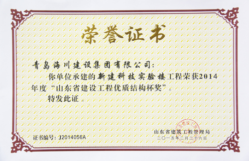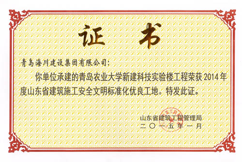 最近,七分公司青島農業(yè)大學新建科技實驗樓工程先后從山東省建筑工程管理局捧回了分別于2015年一月和二月頒發(fā)的兩項省級榮譽證書——榮獲“2014年度山東省建筑施工安全文明標準化優(yōu)良工地”和榮獲“2014年度山東省優(yōu)質結構杯獎”。消息傳到工地,大家歡欣鼓舞,一年多的努力終于結出了豐碩的成果。